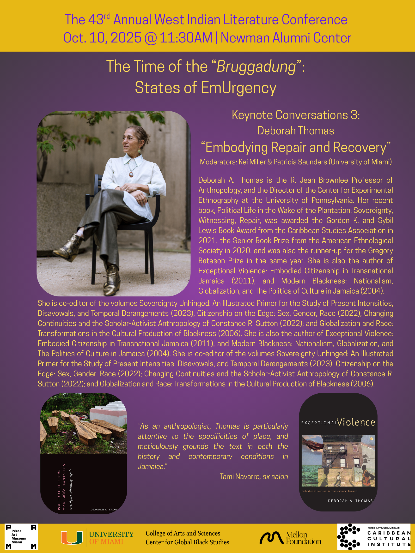 Today, Caribbean societies and, by extension, Caribbean writers, reckon with crises that feel both new and cyclical. Increased volcanic activities, record-breaking hurricanes, droughts and heatwaves are only some of the environmental pressures we face. States of Emergency in response to political and social violence have become commonplace in Haiti, Trinidad and Jamaica. As a group of Caribbean critics, we have also had to reckon with the passing of a generation that helped to establish and define our field. In its broadest sense, this year’s Conference of West Indian Literature, convened around the theme, ‘The Time of the Bruggadung: States of EmUrgency,’ asks the simple question: what are Caribbean writers reckoning with today?